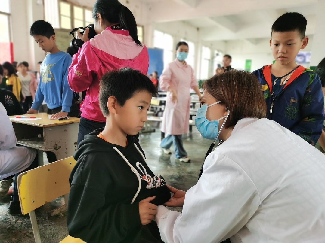 随后,义诊团队还前往苦志育才公益学校,为全校200多名学子进行健康检查,发放“成长指南”健康宣传册,帮助学生树立健康意识,增强健康理念。