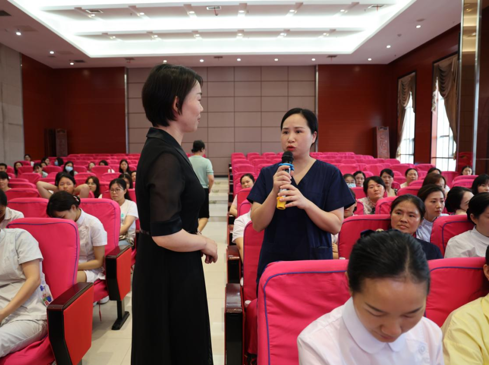 下午,胡美华老师对全院护士长、护理骨干进行了《基于问题导向的反向标准质量管理体系构建》的护理管理知识培训。她从护理管理要求、护理管理现状、护理管理思考三个维度切入,指出了“反向标准”质量管理体系构建的目标、方法和步骤以及包含评价标准、问题改进、量化督查等内容在内的实际应用和成效。培训课结束后,进入到面对面答疑解惑的互动环节,现场气氛热烈,学员们纷纷提出平时工作中遇到的困难和疑惑。胡老师凭借多年的管理带队经验和过硬的专业知识睿智却不失诙谐地解答,淡定从容地为学员一一解惑,博得场下阵阵掌声。通过培训,进一步提升医院护理管理水平,激发护士长管理潜能,培养护理管理后备力量,为今后该院进行科学严谨的护理管理起到了很好的指导作用。
