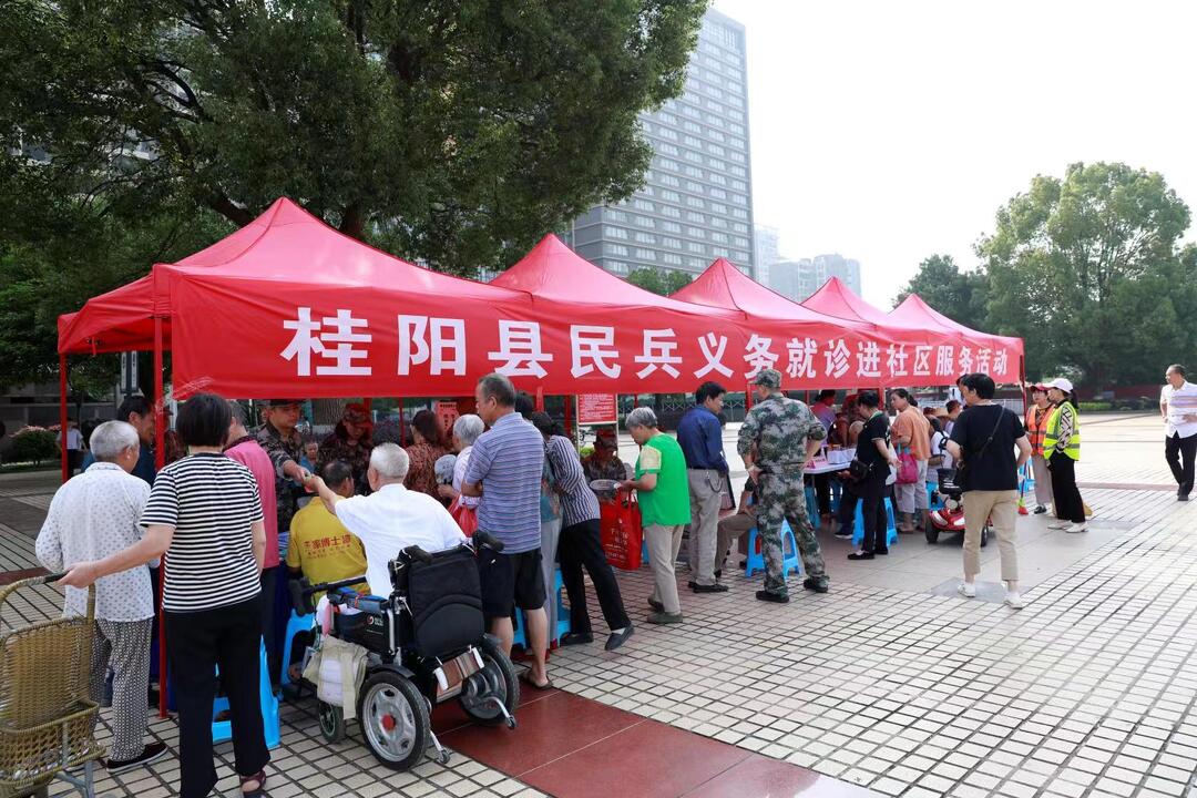 在欧阳海广场,民兵们结合自身专业,免费为大家测量血压、血糖,检查视力,接受群众健康咨询,提供专业就医建议,并传授临床用药、合理膳食、运动锻炼等疾病诊疗和预防知识。