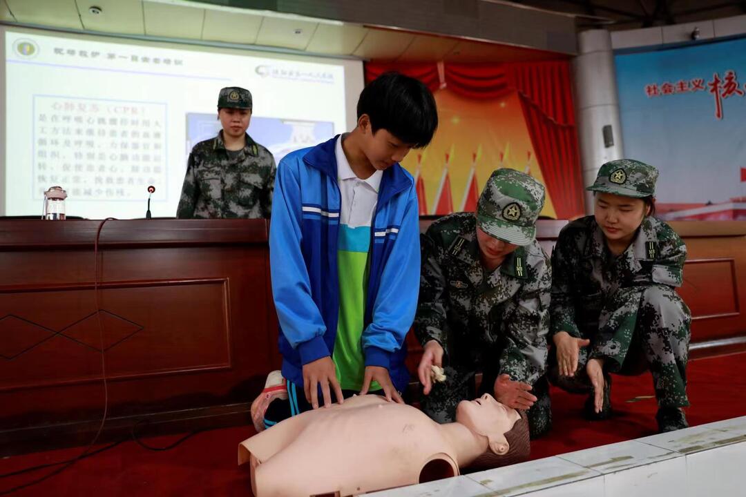 暑期将至,民兵医疗救护分队还走进学校,结合生活实际案例,重点突出生命救治的“黄金时间”,向师生们讲解了气道异物梗阻、溺水、创伤出血、抽搐、惊厥等各类意外情况的应对方式,并详细演示了外伤处置、心肺复苏、海姆立克法等急救技能。学生们还在医生的指导下进行了实操练习,提高了应急自救互救能力。
