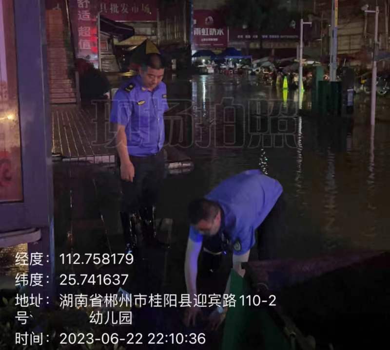 新桂阳6月23日讯(通讯员 城管君)6月22日是端午节,当天,我县迎来“暴雨+雷电”的极端恶劣天气,全县城管执法系统按照前期安排部署,迅速开展应急处置工作。县城管执法局班子成员带队深入一线、闻讯而动、拉响警报、抓住重点、压实责任对城区易发生内涝、道路积水、山体滑坡、建筑工地等实地开展应急处置工作督促指导,对城区内涝区域,第一时间安排市政作业部门进行处理。全力防范城市内涝自然灾害事故。