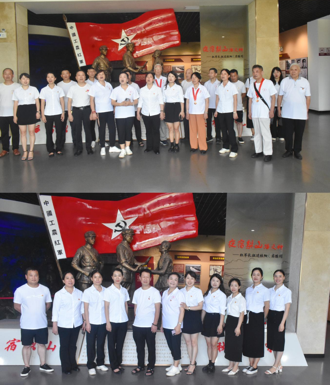 活动中,大家胸佩党徽,精神抖擞,来到桂阳县夜宿梨山红色教育基地,重温红色历史,感悟“夜宿梨山、秋毫无犯”的故事,让穿越时空的红色精神在新时代传承与发扬。陈列馆里的每一件展品,都是伟大时代故事的讲述者。