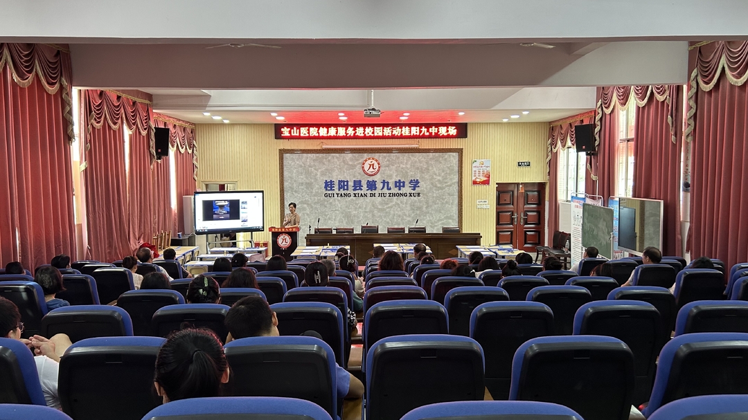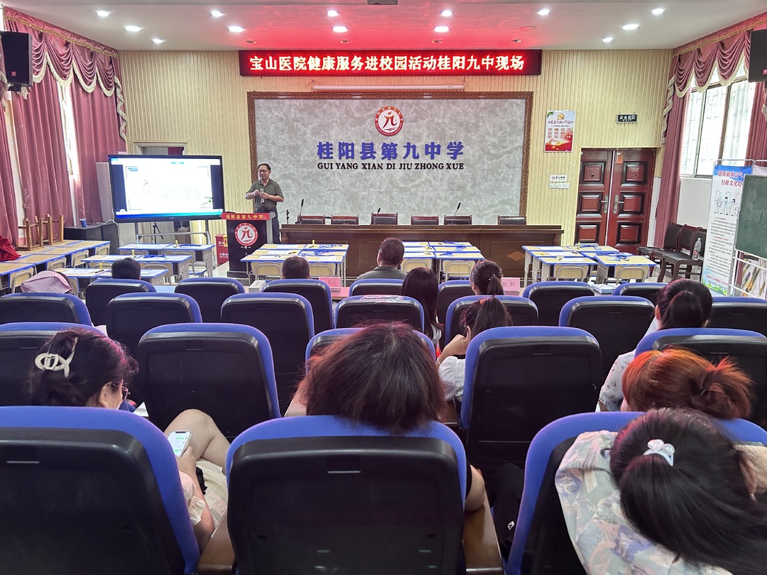 新桂阳7月3日讯(记者 何卓)6月30日,宝山医院到桂阳九中开展健康服务进校园活动。