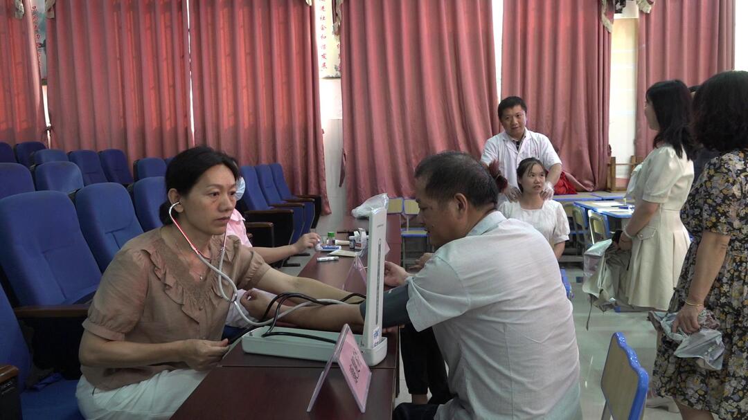 健康讲座后,医护人员还为教师们进行身体检查,测量血压、血糖,解答他们近期身体上的出现一些常见问题。