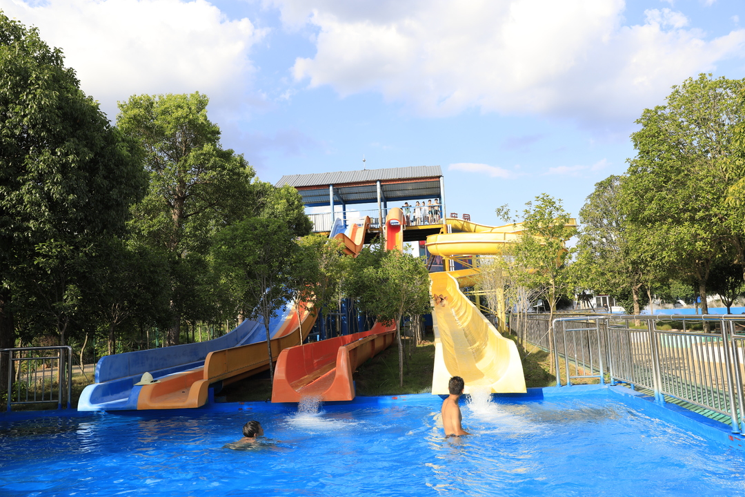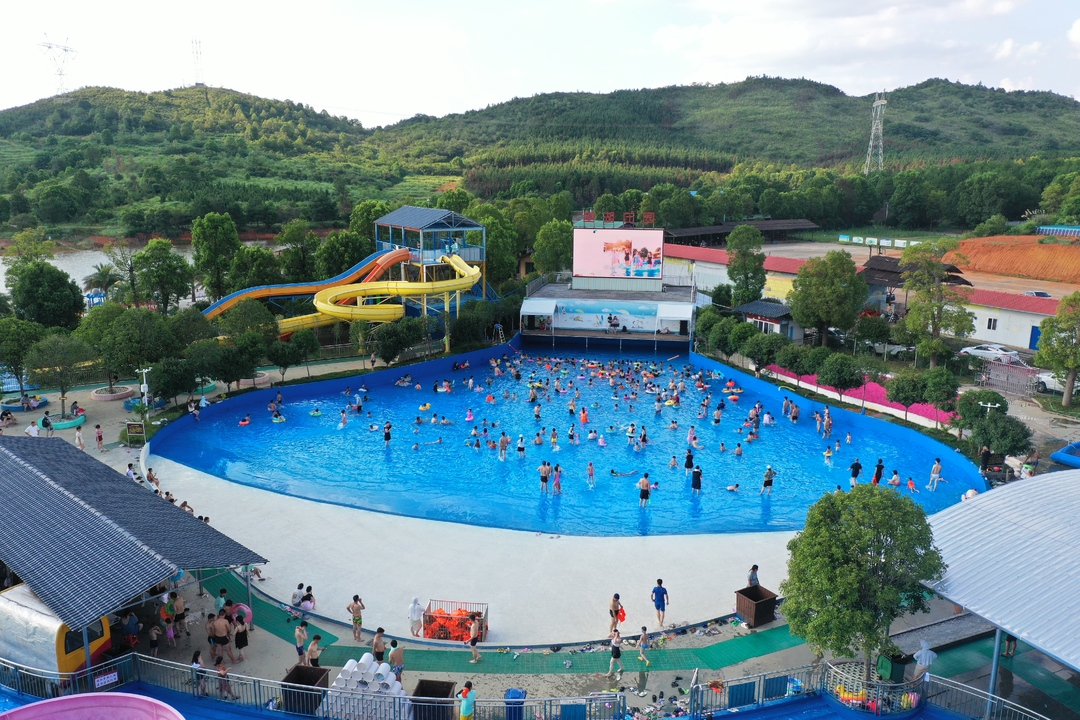 望湖生态庄园的水上乐园流转了樟市镇高塘村20余亩土地,是以村企合作、村民入股的方式建立一个乡村水上乐园。景区依托水资源,建设了湖中游船、亲子水乐园、玻璃漂流等水上项目,将亲水元素融入游览和体验全过程,让乡村旅游焕发新生机,目前,日均接待游客达2000余人。