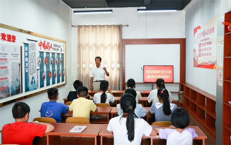 “村里调整村民代表,我们新推选了一名有干事热情的人,现在开展活动更方便了。”李廷军出生于欧阳海镇镇振南村,是欧阳海镇政府的一名退休干部,有丰富的基层工作经历,也热心公益活动,老百姓认可度高。自村民代表联系服务群众工作深入推进以来,经过群众联合推荐、综合考核,李廷军当选为振南村村民代表并认领了爱心志愿者服务岗位。刚放暑假,他便忙碌起来,给刚放假的孩子们上起了防溺水教育课。“我也希望能发挥余热,为这些孩子们提个醒,尽量不让自己身边出现溺水事故。”李廷军说道。