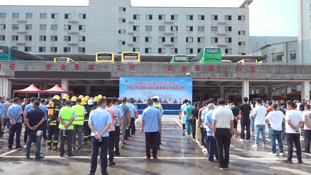 新桂阳7月14日讯(记者 李勇)7月14日,郴汽集团开展2023年道路运输交通事故应急救援演练。