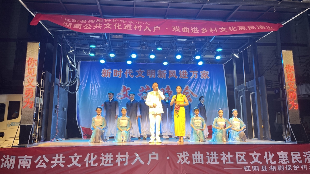 新桂阳7月14日讯(记者 邓琴)7月13日,新时代文明新风进万家文艺晚会在龙潭街道高码头社区精彩上演。