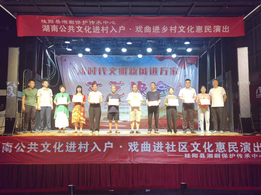 新桂阳7月17日讯(记者 周立志)7月14日晚,鹿峰街道百花社区举行新时代文明新风进万家文艺晚会。