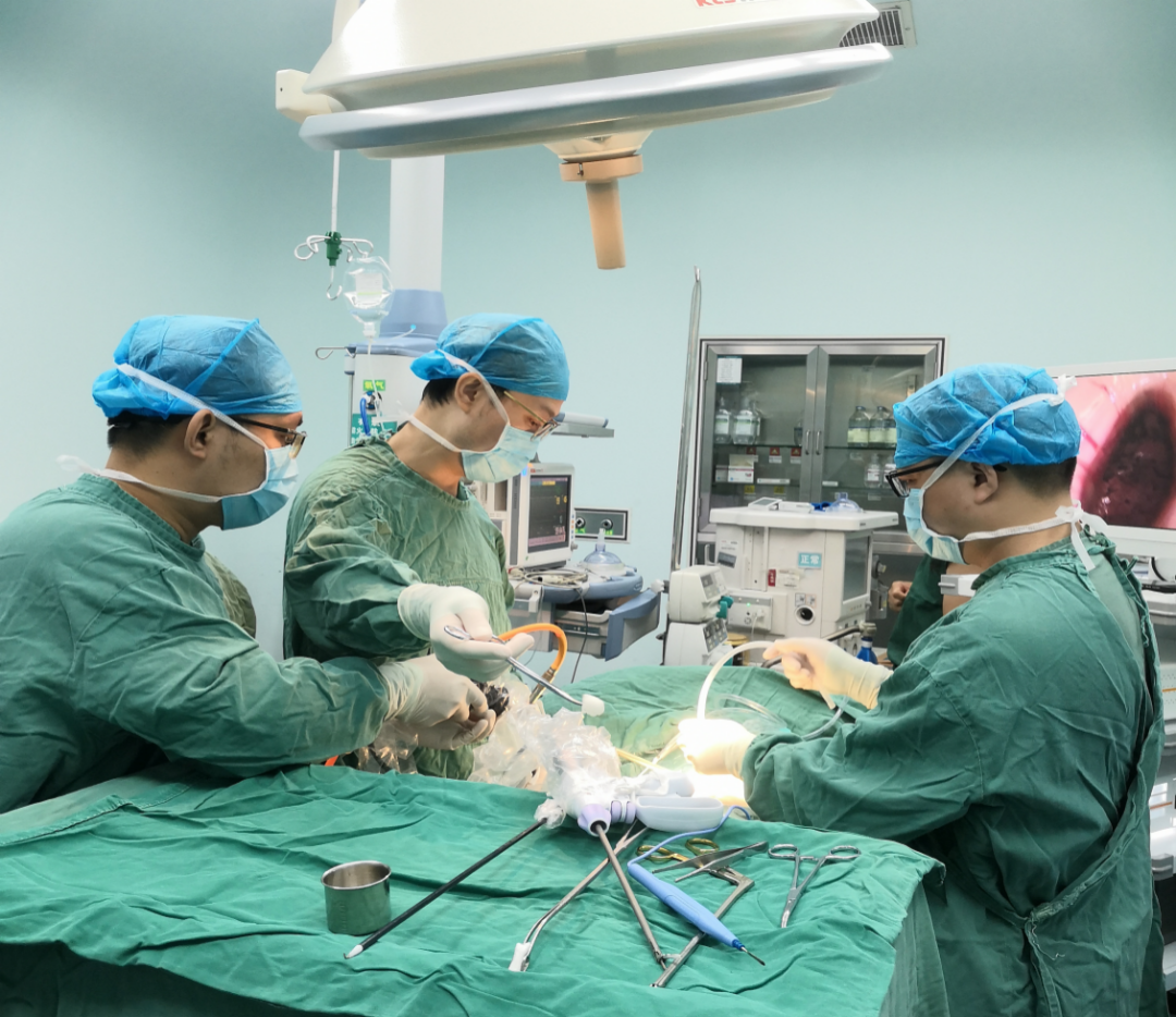 当天,三名博士共主刀完成了8台胸腔镜肺肿瘤和泌尿外科手术,以往这8台手术都是在省内外三甲医院才能开展的,手术效果获得了患者和家属的高度评价。