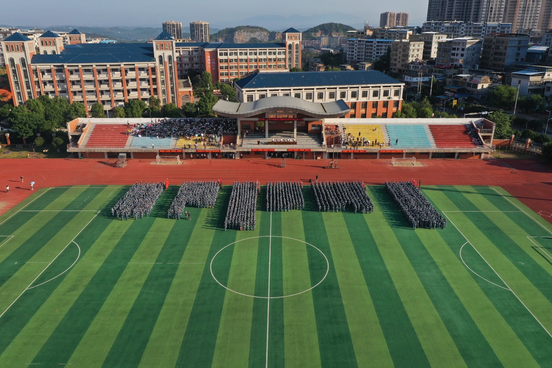 新桂阳8月8日讯(记者 周立志 欧阳宇轩)8月7日,桂阳一中举行2023级新生会操表演暨军训总结大会。