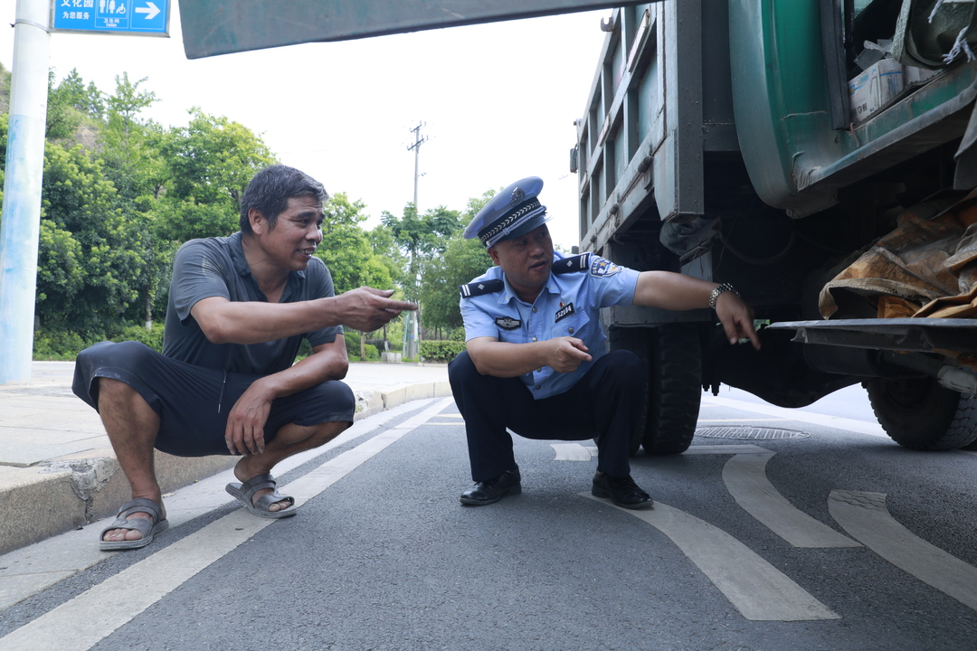 见此情形,交警立即向驾驶人喊话示意停车。这时车辆底部火势突然变大,停车地点正是骏马大道主干道,车流量大,如不及时将火扑灭,车辆燃爆将造成更大危害。交警立即拦停过路车辆找来灭火器进行灭火,伏在地上向拖拉机底部起火点喷射,对火势进行控制。同时,拉起警戒疏导其它车辆通行。