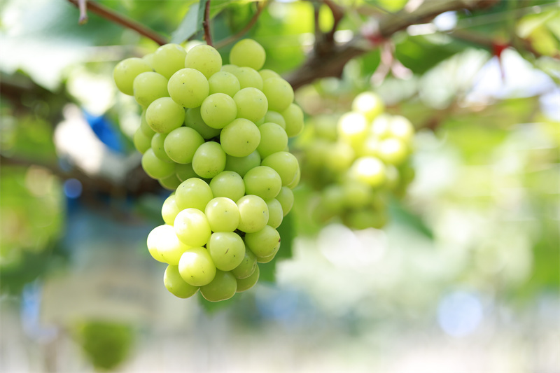 成熟的“月光之泪”葡萄自带酒窝,外形独特,糖分高于一般的葡萄,皮薄肉厚,口感脆甜,被誉为葡萄中的“贵族”,因此深受消费者喜爱。