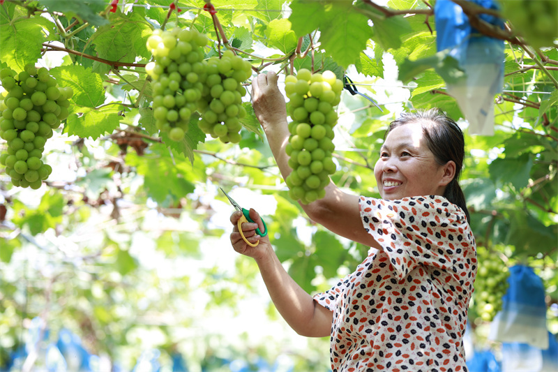 农户正忙着剪枝、采摘、分拣、装箱,准备将新鲜葡萄售往各地市场