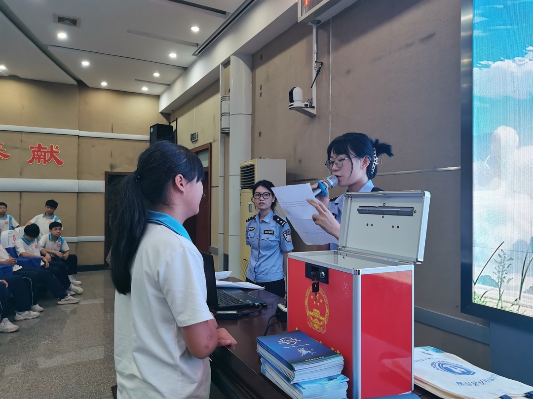 在桂阳一中的课堂上,一场生动的“答题抽奖”活动正在进行。学生们从抽奖箱内抽题作答,答题正确即可获得“反诈纪念品”。学生们拿到的测试题全部是根据青少年的年龄特点、高发的电信网络诈骗真实案例、国家安全教育警示案例设置的情景模拟题目。民警以抽奖作答+答疑解惑的方式“以案开讲”,生动将刷单、游戏账号交易、杀猪盘、冒充电商客服、冒充公检法等七种在学生群体中多发的诈骗类型刨根问底。让学生们了解身边的诈骗陷阱,深入传授防范指南,提高反诈“免疫力”。民警还与学生一起学习反诈手势舞,将反诈知识有趣化、具体化、形象化,让孩子们“记得住、记得牢、防得住”。