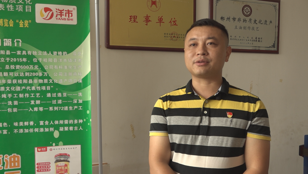 与此同时,公司为名下产品注册了“洋市”商标,完成了古法工艺所有工序的数据化,洋市豆油技艺也被评为“郴州市非物质文化遗产代表性项目”,现在正乘势而上申报省级非遗项目。