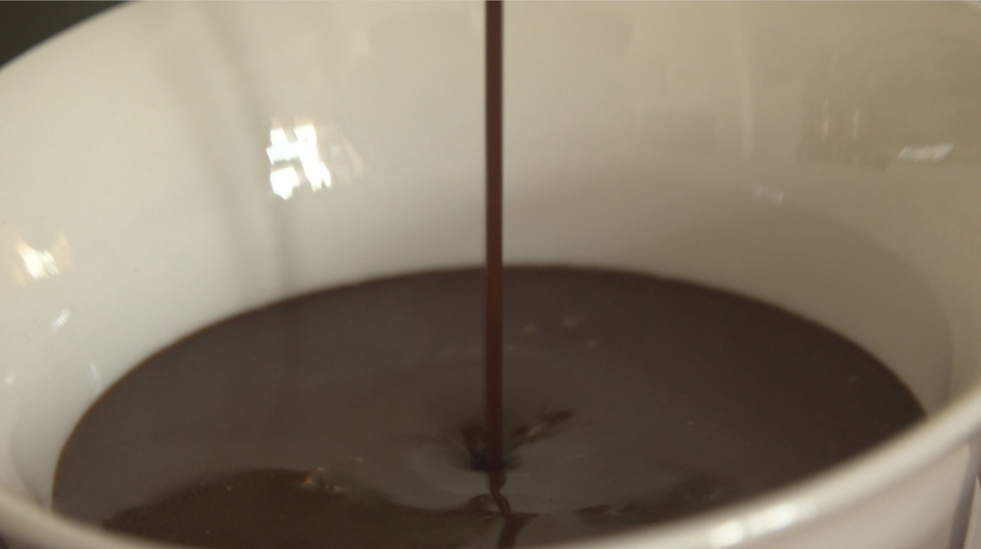 “大家可以看一看,可以给大家演示一下,看到没有?酿造型的,浓稠度比生抽、老抽它还更浓一点。”