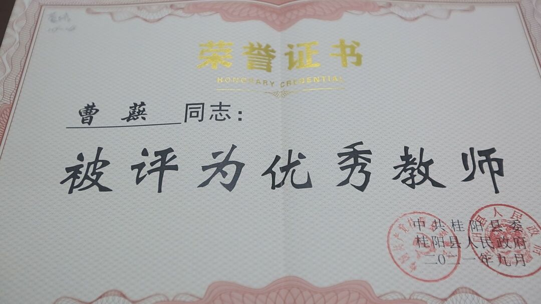 “曹老师上课时风趣幽默,和蔼可亲,知识点通俗易懂,同学们都很喜欢她的英语课。下课时,曹老师平易近人,经常与我们一起讨论难题。人生得遇良师,春风化雨人生之幸,感谢曹老师的谆谆教诲。”桂阳八中高三学生彭麟泽说。