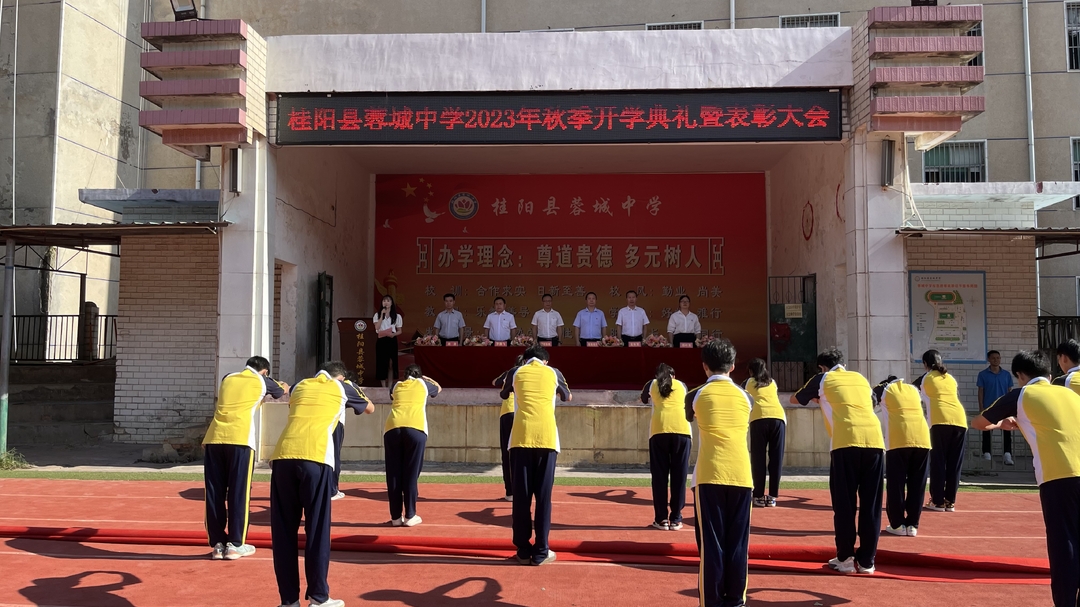 新桂阳9月12日讯(记者 邓琴)9月11日,县蓉城中学举行2023年秋季开学典礼暨表彰大会,对上学期优秀学生、优秀教师进行了通报表彰。随后,全体学生还对教师行拜师礼。