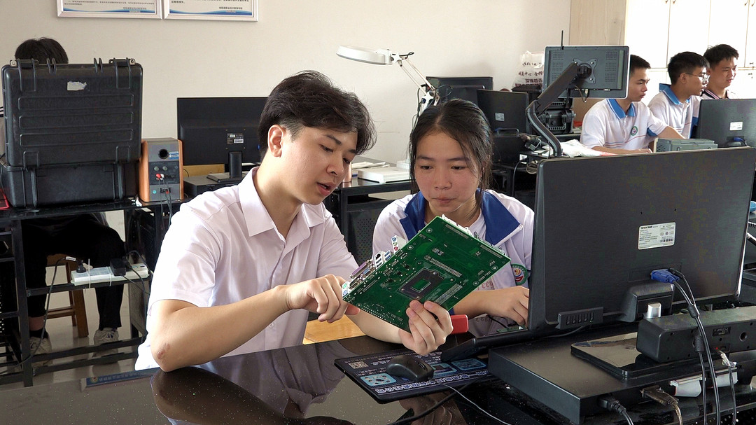 “李瀚老师在各方面都比较优秀,也比较好, 教导我们,管理我们, 还有在学习方面比较用心, 经常会来观看(指导)我们。”县职业技术教育学校学生肖元证说。