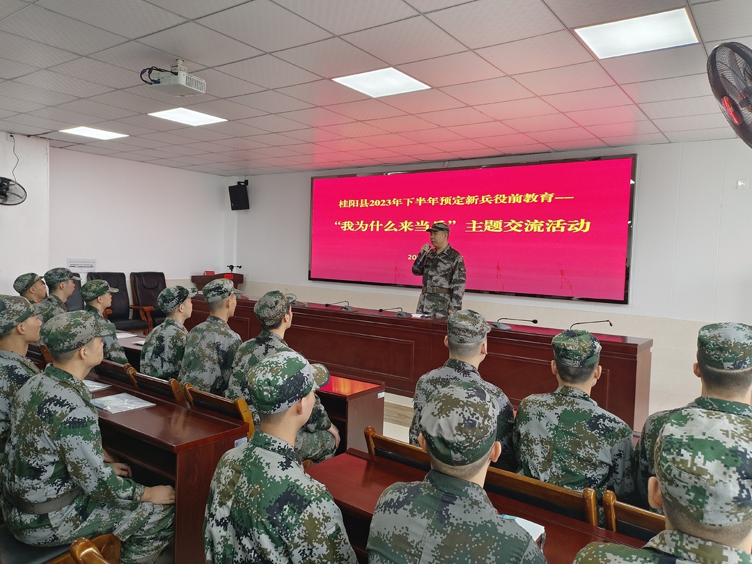 在县人武部新兵役前教育训练基地里,毕业于南宁师范大学的硕士研究生李逸峰,正在同准新兵们分享自己成长的经历和立志报国的梦想。1997年,李逸峰出生于广州,幼时跟随父母回到家乡桂阳,第一次听父母说了桂阳籍共产主义战士欧阳海舍身推战马的故事,这在他的心里种下了一颗红色的“种子”。