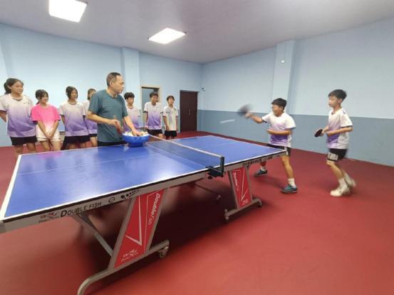 为备战桂阳县每年举行的中小学生运动会,2020年,学校专门腾出三间教室,添置了六张乒乓球桌,成立了桂阳九中乒乓球队,由经验丰富的封景华老师担任乒乓球教练。学校乒乓球队成立后,面临着一系列的问题,学生生源差,基本功不扎实,而且封景华老师年岁已高,身体状况不好,做过腰椎间盘突出手术,患有高血压等疾病,但为了学校的荣誉,培养更多的体育优秀人才,封景华老师还是毫不犹豫地承担了乒乓球的训练任务,然后开始了一系列科学、系统地训练。