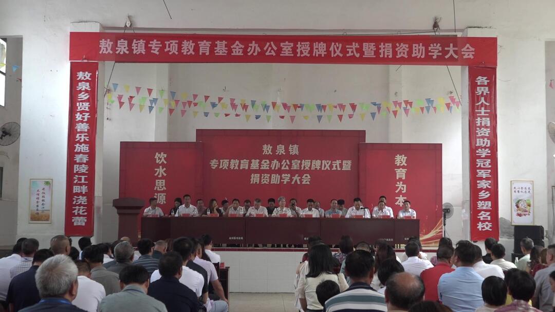 新桂阳10月5日讯(记者 何卓)10月3日,敖泉镇举办专项教育基金办公室授牌仪式暨捐资助学大会。