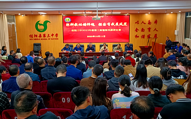 新桂阳10月12日讯(记者 李勇)10月11日,桂阳三中举行主题为“躬耕教坛铸师魂,强国有我展风范”2023年教职工师德师风演讲比赛。