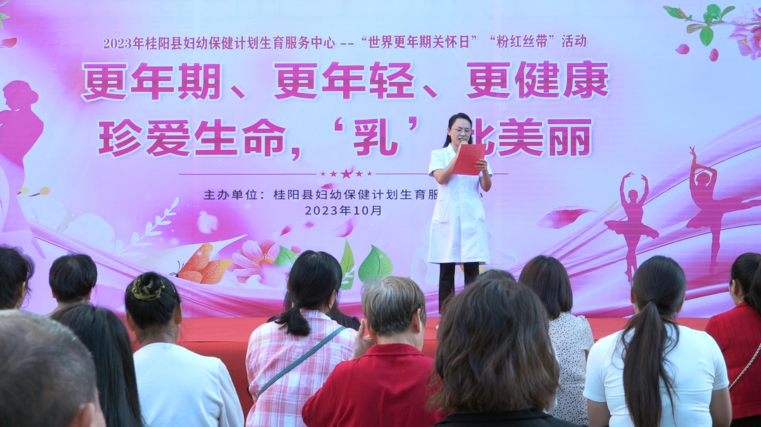 新桂阳10月18日讯(记者 李勇)10月18日是世界更年期关怀日,上午,县妇幼保健计划生育服务中心开展专家讲解、现场互动、义诊咨询等活动,向广大中老年女性宣传更年期保健知识。