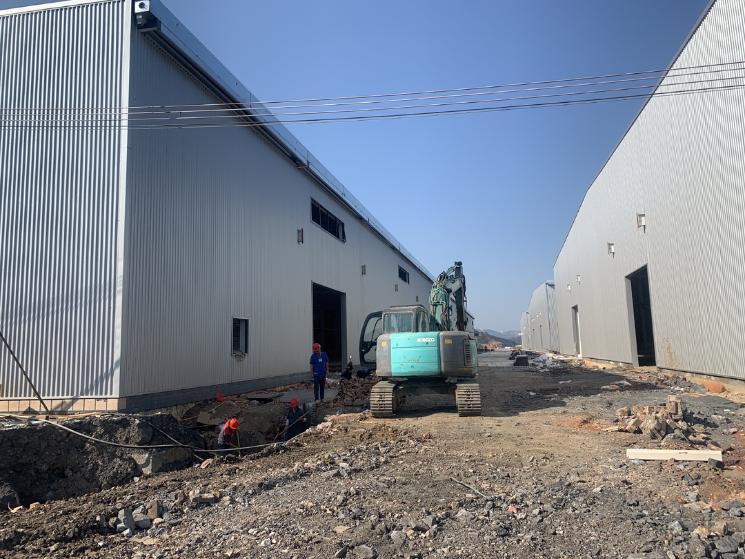 湖南嘉慧智能家居科技产业有限公司项目现场施工员刘正雄介绍道,“目前我们项目的话已经建好了两栋宿舍楼、一栋仓库、四栋厂房,主体已经全部已经完成了,(全部工程)完成了90%左右,目前已经在做扫尾阶段了。”