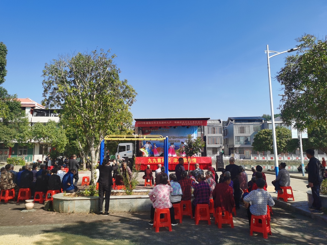 活动邀请了全村70岁以上的老人前来观看,还为老人们发放重阳节礼包,文化志愿者为村民们带来了笛子独奏《扬鞭吹马运粮忙》、戏曲表演唱《仙女赞桂阳》、群舞《彝族纵情》等11个精彩节目,让村民在家门口品尝文化盛宴。