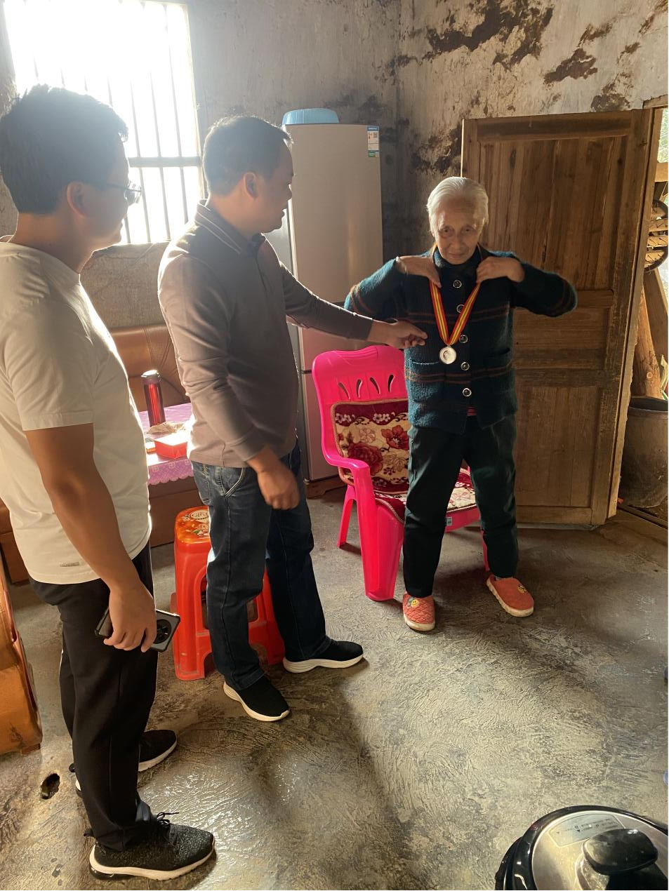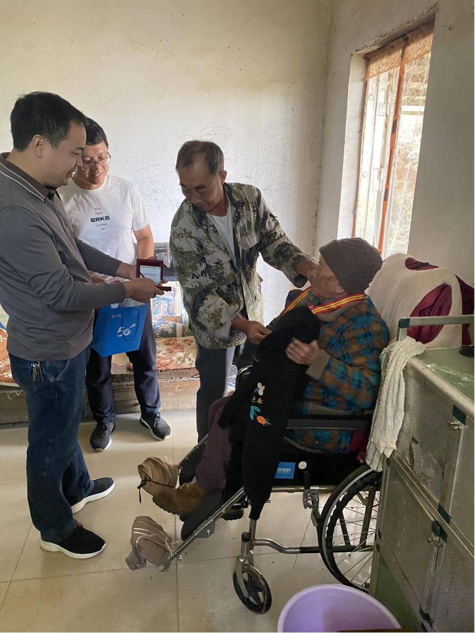 “家有一老,如有一宝”。工作人员相继来到公和村百岁老人欧阳桂花和山河村百岁老人贺秋花家,与老人拉家常,详细了解老人身体状况和日常生活情况,查看老人的生活起居是否方便,为老人家购买了保暖内衣。当百岁老人贺秋花穿上合身的保暖内衣时,脸上洋溢出幸福的笑容,她高兴地感谢镇党委政府的关心关爱。