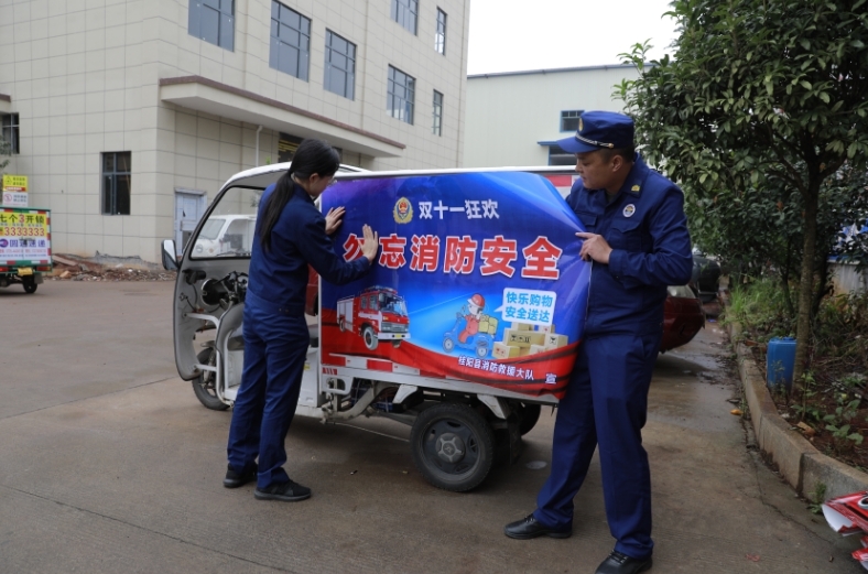 新桂阳 11月13日讯 ( 记者 欧阳宇轩 ) 连日来,县消防救援大队以消防安全宣传“进家庭”为契机,将“119”消防宣传月与“双11”电商活动紧密结合,充分发挥快递员流动性强、接触人员广的优势特点,让快递小哥化身消防安全小卫士,用新颖的宣传方式把消防安全带到群众身边,进一步提高群众消防安全意识。