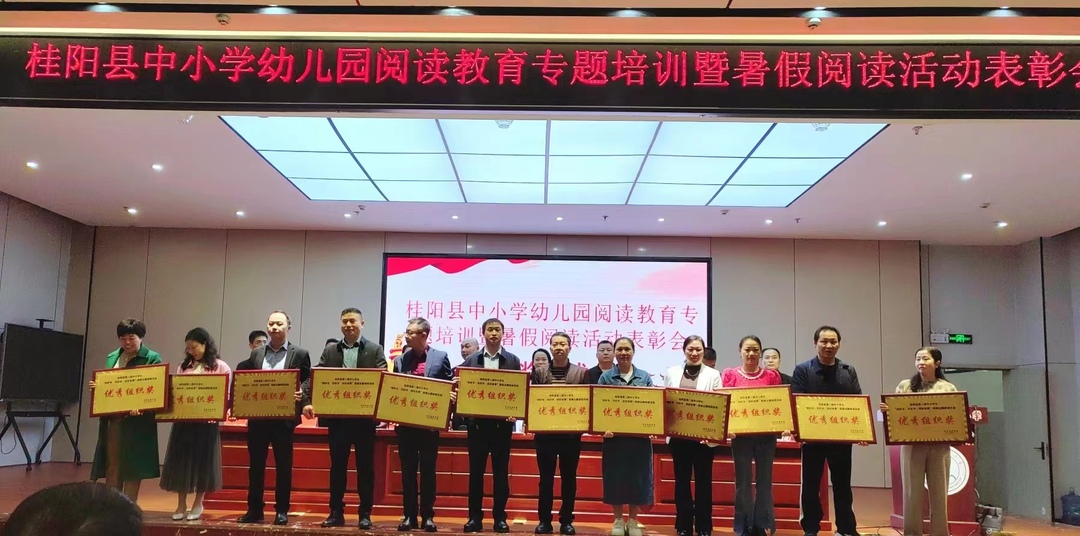 会上还对桂阳县第二届“读好书·写好字·讲好故事”假期主题阅读活动中获得优秀组织奖的12个单位,98位优秀阅读引领人,115名优秀阅读之星,103篇优秀阅读征文作品和38件“同讲桂阳好故事”优秀视频作品进行了表彰。