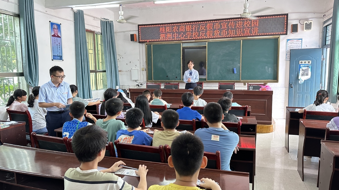 新桂阳11月15日讯(通讯员 宁波 陈虹利 尹璐)为深入践行社会责任,加大金融知识宣传普及力度,近日,桂阳农商银行到泗州中心校举行金融知识宣讲活动,为在校师生全面普及反假货币、反电诈等金融知识。