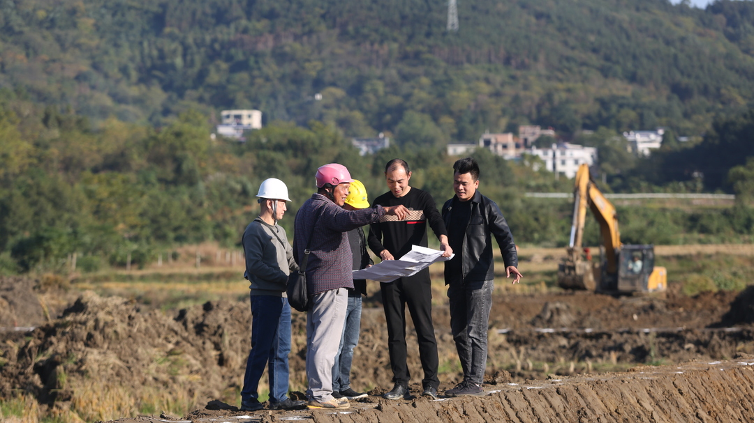 新桂阳 11月22日讯(记者 廖诗卉 何禹军)11月21日,在黄沙坪街道沙坪村的农田建设现场,数台大型挖掘机来回穿梭作业,土地平整、机耕道建设等配套项目建设环环紧扣,有条不紊地推进着。沙坪村这片1250亩的土地,也即将拥有一个新的“身份”——“高标准农田”。放眼望去,宽广的田地即将连片,曾经的梯田、沟壑、小片田,在经过一系列改造后,即将变成保墒、保土、保肥、便于耕作的大粮田。