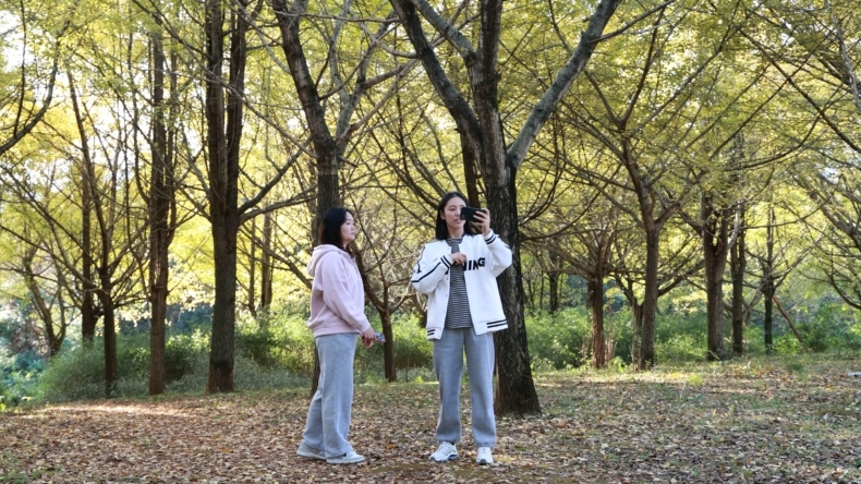 银杏虽还未到最盛之时,但层峦叠嶂的形状加上如同水彩般渐变的叶片颜色,还是吸引了部分市民到茶场银杏林打卡拍照。光影错落间,前来游玩的市民享受着冬日阳光及银杏美景,不停变换角度,留下最美瞬间。