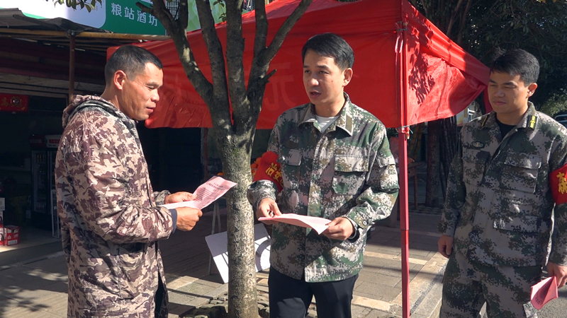新桂阳11月22日讯(记者 李勇)秋冬季节,天干物燥,是森林火灾多发期。为加大森林防火力度,方元镇发挥民兵力量,组建一支森林防火民兵志愿服务宣传队,在辖区巡逻的同时,宣传森林防灭火知识,实时掌握防火动态,切实筑牢森林防火安全防线。