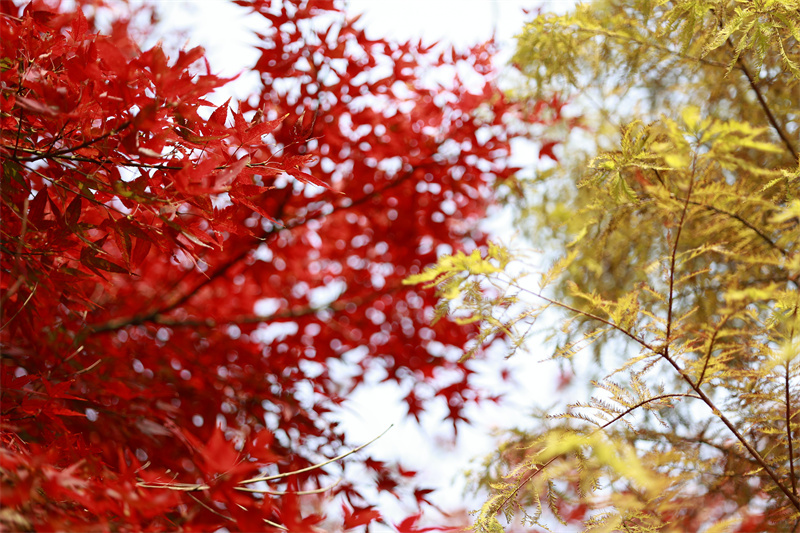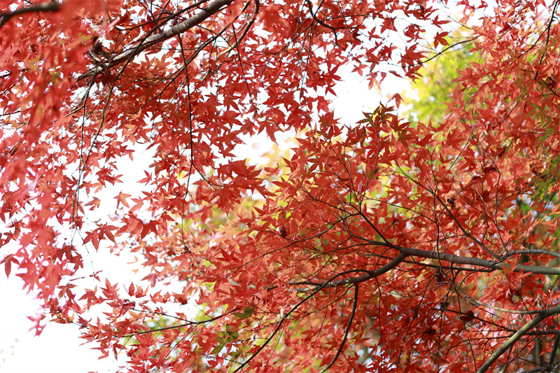新桂阳12月1日讯(记者 陈勇 何禹军 常凯)“停车坐爱枫林晚,霜叶红于二月花”。日前,县农科所红枫树渐次变红,透过细碎的阳光,红色的枫叶格外艳丽夺目,以最热烈的色彩温暖着游人。漫山红遍,层林尽染。火红的枫叶吸引众多游客前来游玩“打卡”,令人流连忘返。