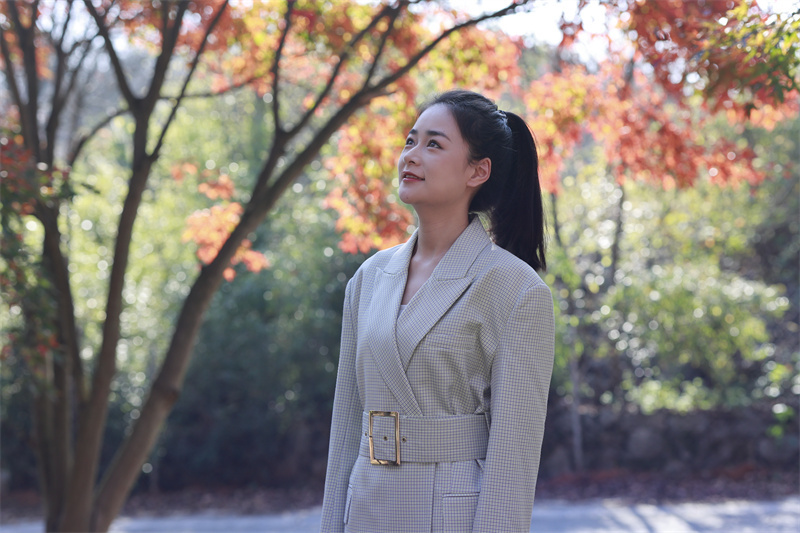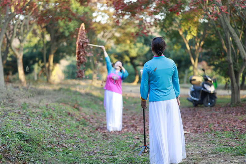 “今天和好朋友来枫叶林打卡 , 感觉这块风景很优美,枫叶有绿的、 黄的 、红的 ,层林尽染的感觉,拍出的照片非常得漂亮,走在树林里面心情很舒畅。”游客蓝玲说。