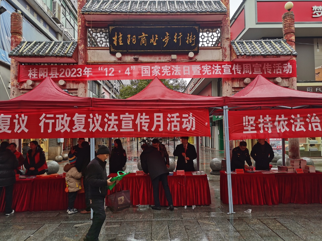 新桂阳12月4日讯(记者 周立志)12月4日,是我国第十个国家宪法日,我县在蔡伦广场开展2023年“12·4国家宪法日”法治宣传活动。