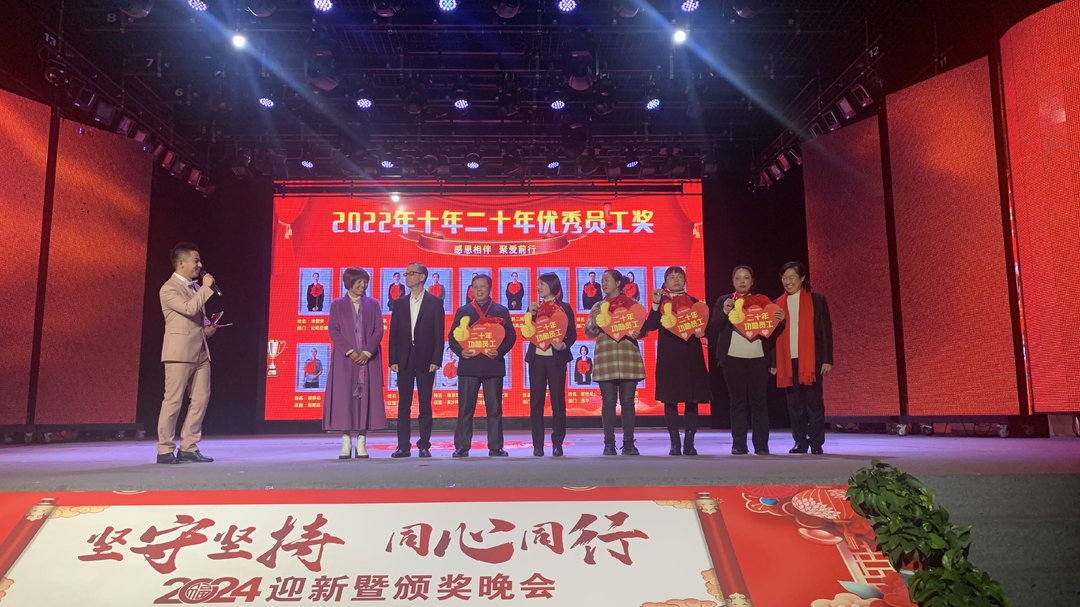 新桂阳12月6日讯(记者 曹诗灏)12月5日晚,"同心同行 坚守坚持" 惠康商贸集团2023年迎新暨表彰晚会在县融媒体中心演播厅举行。