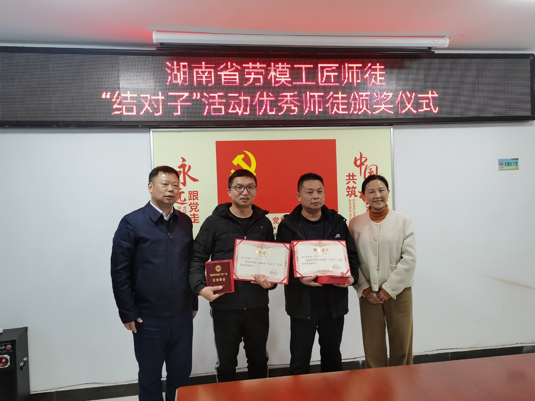 新桂阳12月29日讯(记者 周立志)12月28日,县总工会为湖南省劳模工匠师徒“结对子”活动优秀师徒颁奖,并为湖南省示范性劳模创新工作室授牌。