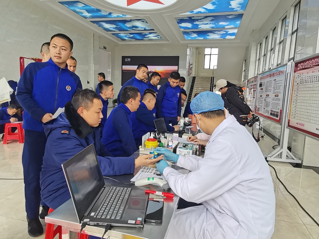 消防指战员在工作人员的引导下,经过填写信息、血压测量、化验等环节检查筛选后,纷纷撸起袖子依次来到献血车内进行献血。消防指战员们表示,要用实际行动践行消防志愿服务精神,用热血守护群众生命健康安全。