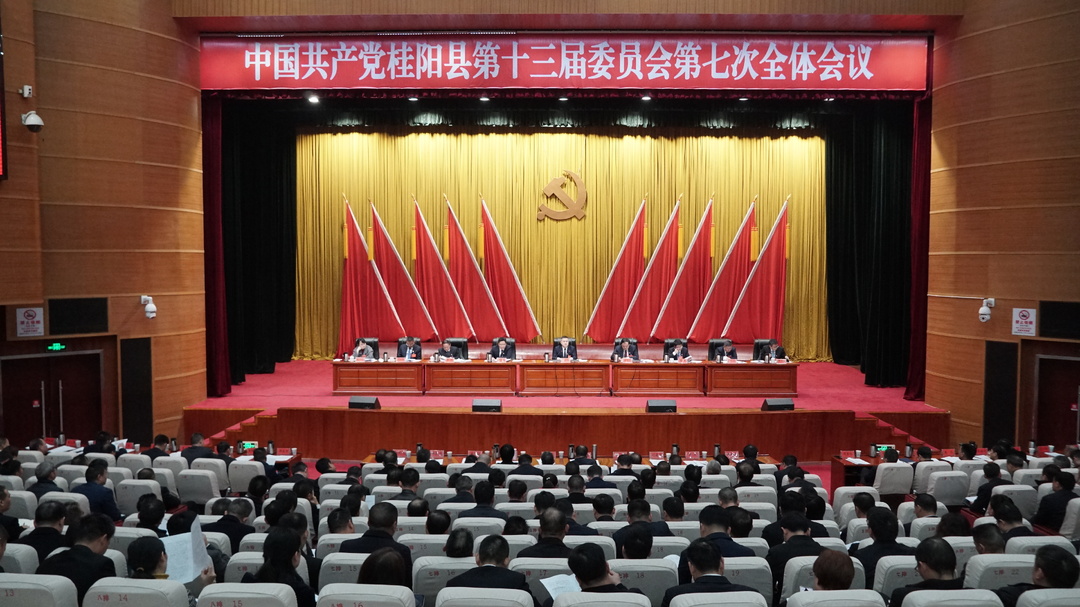 全会号召,全县各级党组织和广大党员干部要更加紧密地团结在以习近平同志为核心的党中央周围,坚定信心、保持定力,锐意进取、真抓实干,努力完成全年经济社会发展各项目标任务,加快建设“四个定位”,以高质量发展的实际行动和成效,为奋力谱写中国式现代化桂阳新篇章作出新的更大贡献。