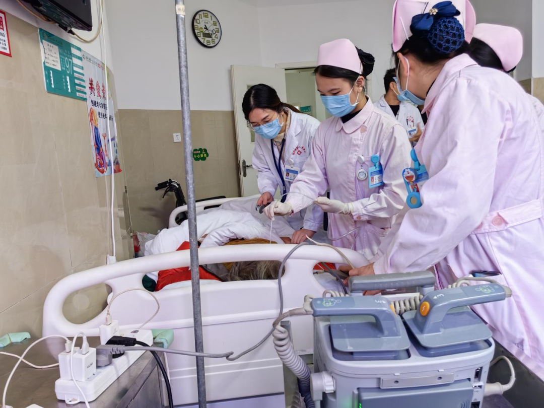“医生、护士,快来、快来......病人不行了!”中医(老年医学)科值班医生护士顿时忙成一片……所幸,经过一番抢救,躺在病床上的病人转危为安。导致危险发生的原因,竟是患者“噎食”了。 1月10日晚间9点钟左右,正在隔壁病房做治疗的护士,突然听到97床病房有人在呼救,听到呼救后立即赶到病房,只见97床的一位75岁袁奶奶脸色发紫,呼之不应,意识丧失。护士急忙用随身带的传呼机呼叫值班医生和另一名值班护士,医生迅速赶到病房,快速评估患者呼吸、心跳情况,询问与分析病情,她判断袁奶奶是因为进食后服药被噎住而窒息,进而陷入昏迷。医护团队立即启动了紧急抢救程序。他们凭借平时训练有素的专业技能,大家分工合作,医生紧急进行海姆立克法急救,护士迅速进行经口鼻行气管内吸引,面罩吸氧、开通静脉通路......抢救工作有条不紊进行着。 中医(老年医学)科团队正在实施抢救 经过5分钟的紧急处理,护士成功地从袁奶奶的气道中吸出了一根长约15厘米的红菜苔残渣菜叶。随着异物的顺利清除,患者的意识立刻恢复,面色由原先的青紫转为红润,自主呼吸逐渐恢复正常,血氧饱和度也迅速提升至96%。转危为安的袁奶奶开口说的第一句话:“唉!我活过来了,谢谢你们救了我”。在旁亲眼见证这一切的家属,看着安全的袁奶奶,对着医生护士竖起了大拇指,说:“幸亏医生们反应迅速、抢救及时,不到几分钟就让我妈妈活过来了!我们全家谢谢你们!”。 导致病人噎食的残渣菜叶 目前,袁奶奶病情稳定,身体已无大碍。惊险过后,欣慰之余,在这里我们再次提醒老年朋友要特别注意进食安全。在进食时应该细嚼慢咽,避免大块食物或快速进食导致噎住或窒息。一旦发生意外情况,应立即停止进食并寻求医生或急救人员的帮助。 医护人员查看袁奶奶恢复情况