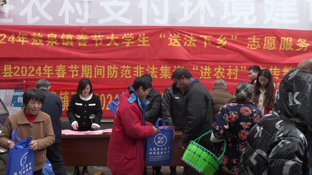 新桂阳1月18日讯(记者 何卓)为认真贯彻落实《防范和处置非法集资条例》,加大《条例》普法和防非宣传力度,增强人民群众对非法集资的防范意识和能力,1 月17 日,2024年春节期间防范非法集资“进农村”宣传教育活动在敖泉镇开展。