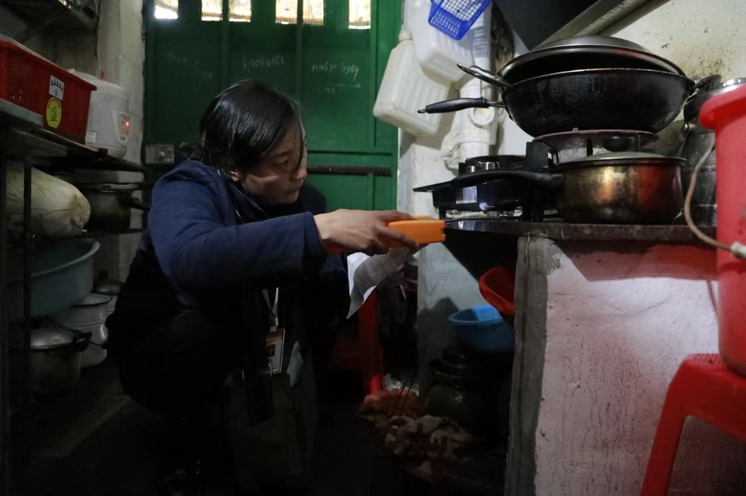 他们采用逐户上门的方式,用手持式燃气泄漏检测仪对各燃气管道接点进行检测,查看是否存在燃气泄漏情况,保障低温雨雪天气下的供气用气安全正常。