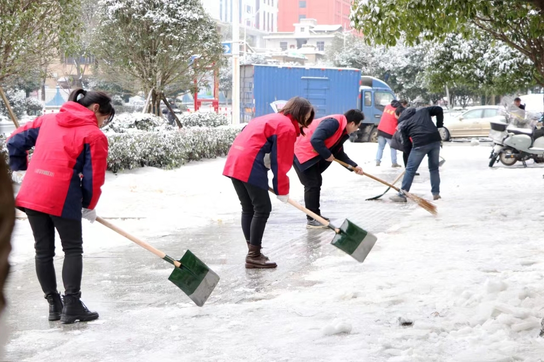 新桂阳1月23日讯(通讯员 周桂萍)2024年的第一场雪后,桂阳县残联办公大楼门前道路被积雪覆盖,经过一夜冰冻,积雪硬化致使路面打滑,给过路市民和办事群众,尤其是前来办事的残疾群众带来安全隐患。为保障残疾人群众的安全出行,桂阳县残联组织全体干部职工和残疾人服务机构积极行动,开展铲雪除冰志愿服务。