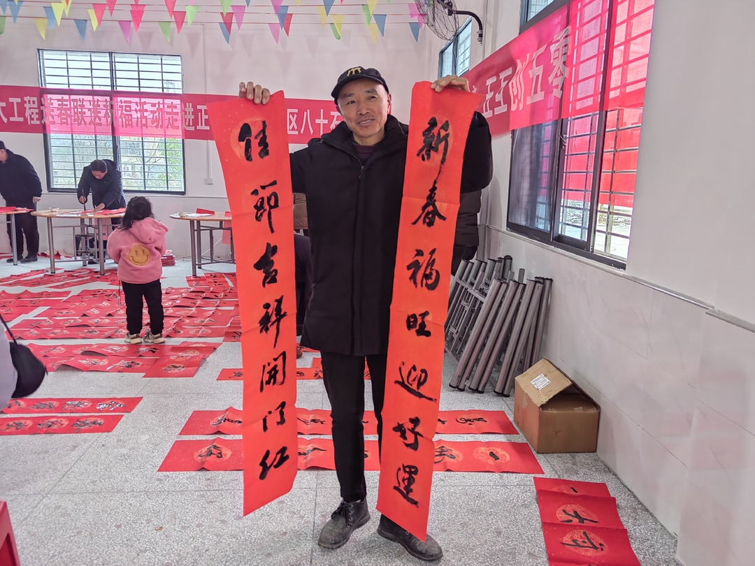 正所谓“无联不成春,有联春更浓”。在村民活动中心的前厅,红色的宣纸铺开在桌面,县文化馆的志愿者们挥毫泼墨,下笔如行云流水,一幅幅寓意吉祥的春联一挥而就。村民拿到中意的春联后赞不绝口,满满的幸福写在脸上。
